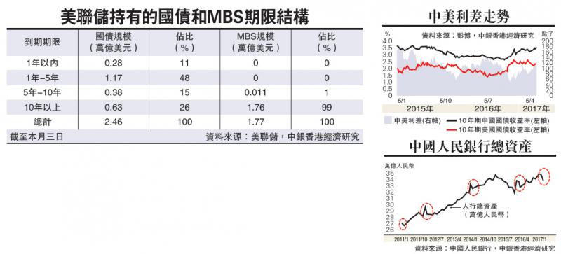 年初以來,美聯儲官員多次提及縮表進程。在市場開始揣測美聯儲的縮表路徑時,中國人民銀行的數據顯示其資產負債表在今年前三個月收縮了1.1萬億元,降幅達到3%。市場高度關注,這是否意味着人行先行美聯儲縮表。在市場情緒趨謹慎下,中國10年期國債收益率升穿3.6%,創2015年8月來新高。然而,追溯歷史資料可見,這其實並非人行的首次縮表,而以往縮表期間市場流動性亦未有顯著抽緊,因而人行的縮表由季節性因素解釋更為合理。反倒是監管升級下中國金融機構資產負債表的調整將產生更為廣泛的影響。/中銀香港分析員 劉雅瑩
