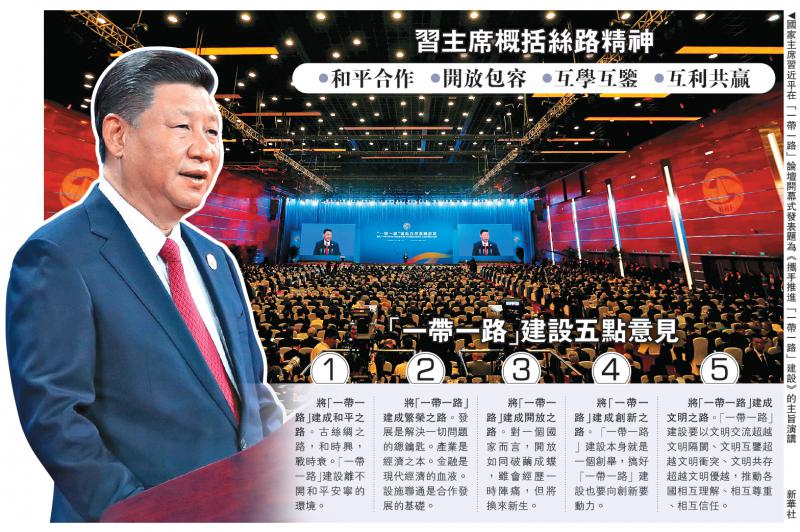 圖:國家主席習近平在「一帶一路」論壇開幕式發表題為《攜手推進「一帶一路」建設》的主旨演講/新華社