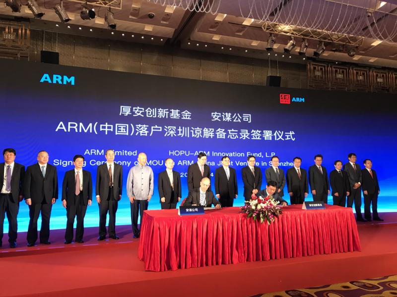 【大公報訊】記者張聰北京報道:ARM公司昨日與厚安創新基金在北京簽署了擬在深圳成立合資公司的合作備忘錄。根據合作備忘錄,該合資公司未來將建設成為內地重要的由中方控股的集成電路核心知識產權(IP)開發與服務平台。深圳市委常委、常務副市長張虎表示,ARM(中國)落戶深圳,將進一步助推深圳打造成為更具競爭力和影響力的現代化國際化創新型城市和國際科技、產業創新中心。