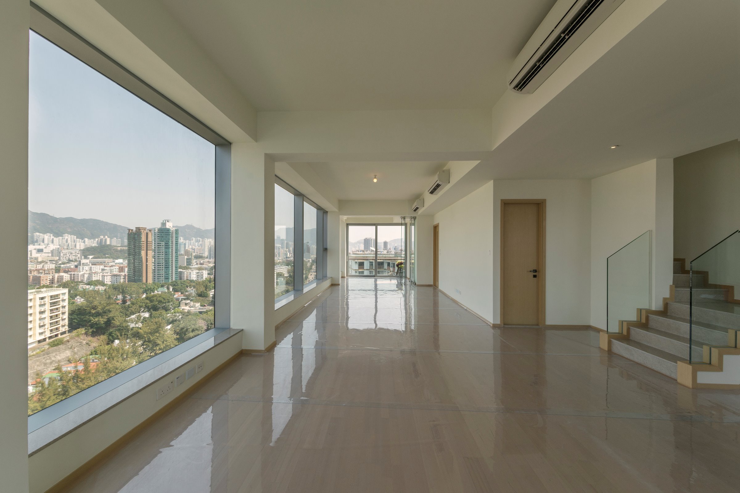 該盤今日向傳媒開放項目唯一一個複式戶,為29樓A室,實用1887方呎,4房間隔,兩層均有露台,發展商稱,意向價參考九龍塘新盤。