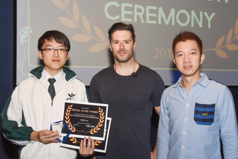 圖:王耀南(左)在美國「2017華特迪士尼國際青少年動畫節」奪得兩項大獎