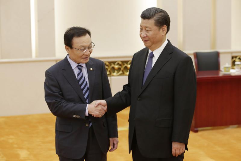 圖:國家主席習近平昨日會見了韓國新總統文在寅的特使李海瓚 /法新社
