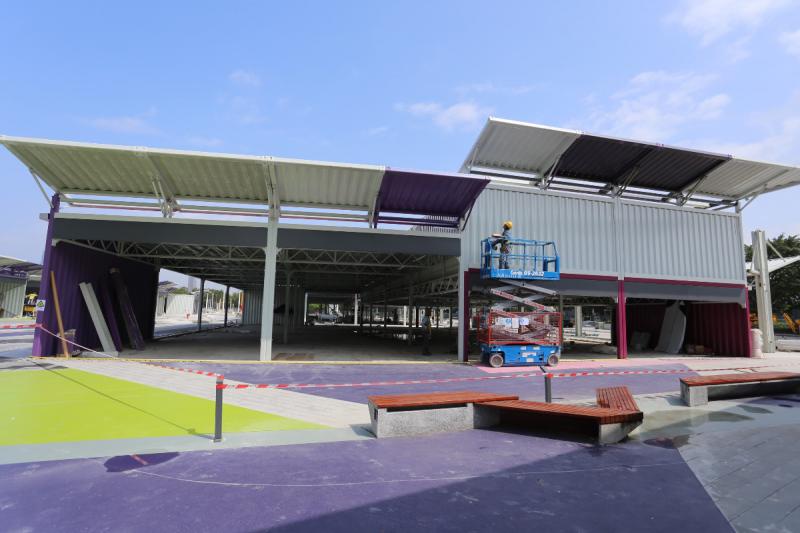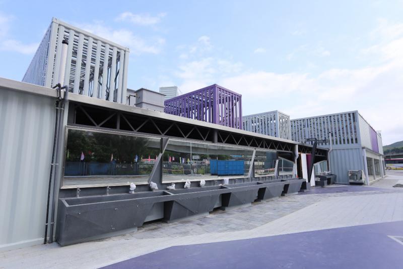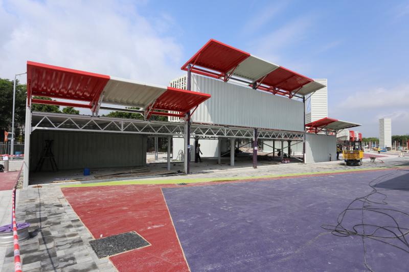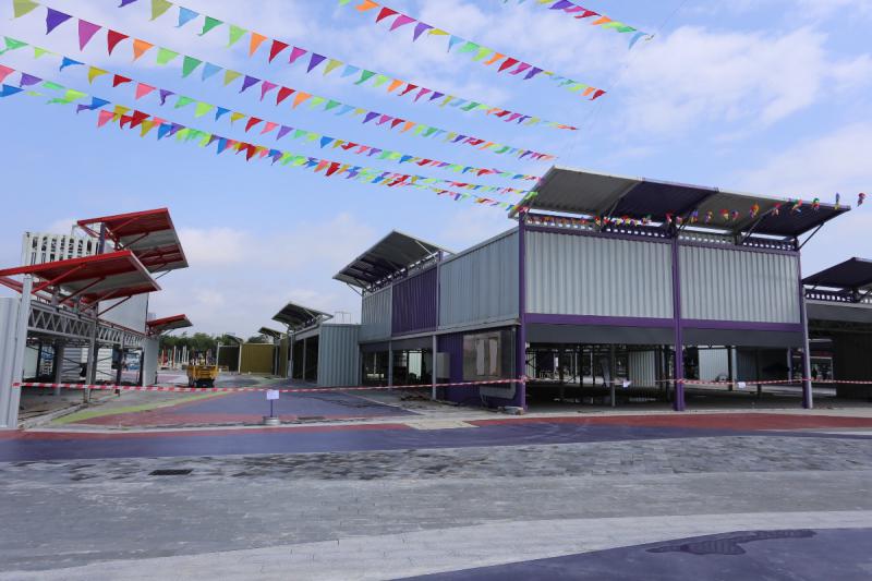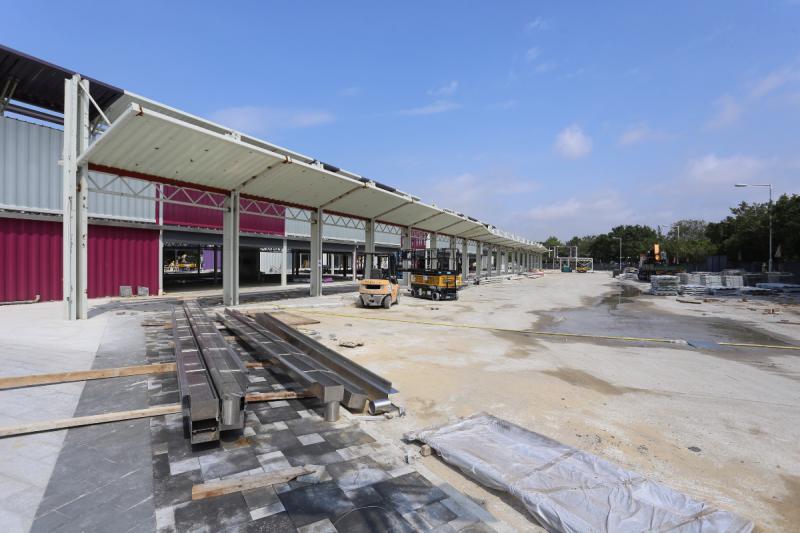 購物城以紅色、紫色及白色的仿貨櫃箱組合而成,佔地42萬平方呎,屬單層建築。現場所見,仍有一半地方有工人正在施工,購物城目標是吸引本地客及跨境購物旅客為主,預計分別佔4成5及3成,平日客流量預計可達1萬人。 購物城店舖面積約300至1000平方呎,租金每平方呎以實用面積計算,約$67至$107不等,約1成店舖會租給中小企、初創企業及社企租約期暫定為兩年。