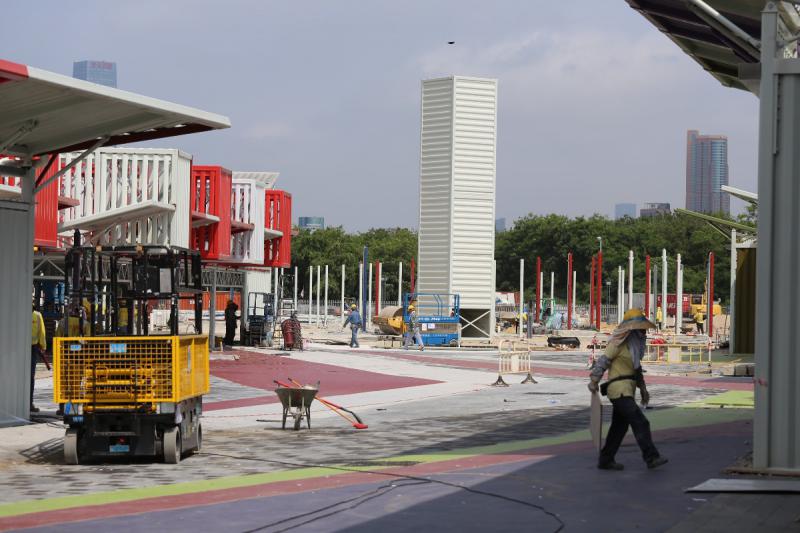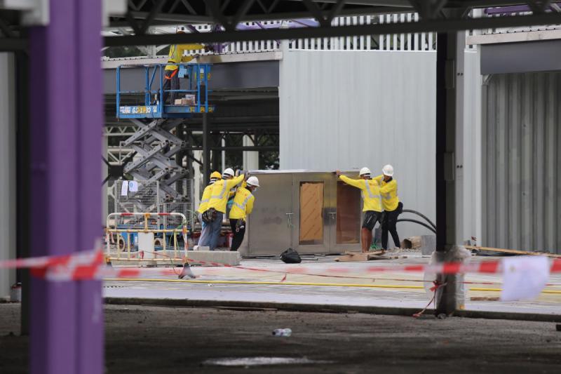 現場所見,仍有一半地方有工人正在施工