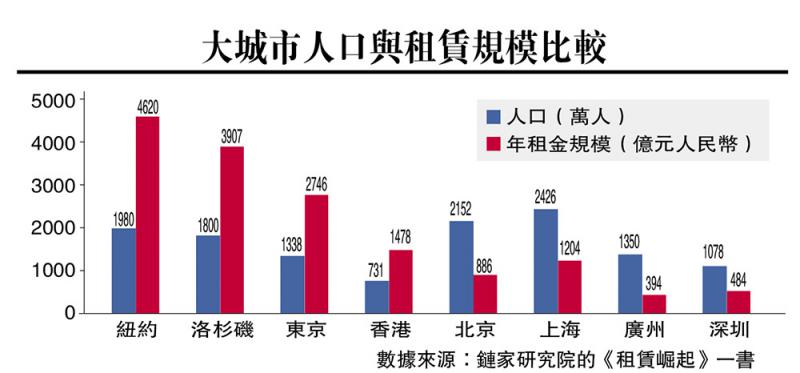 好友近日傳來一個統計圖表,是內地鏈家研究院在《租賃崛起》中關於「大城市人口與租賃規模比較」的分析。筆者不是內地房產的專家,不敢「充內行」對此評論,但因為統計圖表中包括了香港及各大城市的數據,我是香港的地產專家,同時對國際金融亦有一點研究,所以打算由外向內看來做觀點作分享和呼應。筆者覺得有關報告是專業的,從數字可以看到中國新經濟模式的精彩之處,也看到大時代的去留。