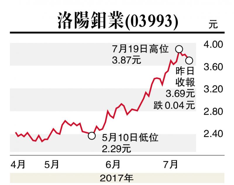洛陽鉬業(03993)主要從事鉬、鎢、銅等有色金屬的開採、冶煉及加工業務。集團為中國有色金屬的龍頭之一。集團早前公布2017年首季業績,收入錄得57.8億元(人民幣,下同),同比增長399%。另外純利為5.97億元,按年增長達323%,每股收益4分,表現相當出色。期內收入及純利大幅增長,主要因為集團於去年底完成收購的兩個海外礦項目,包括巴西鈮磷礦及剛果銅鈷礦的收入併入財務報表,另外亦受惠國際銅及鈷價格於2017年初出現觸底反彈和大幅上漲,預期今年中期純利可錄得大幅度增長。