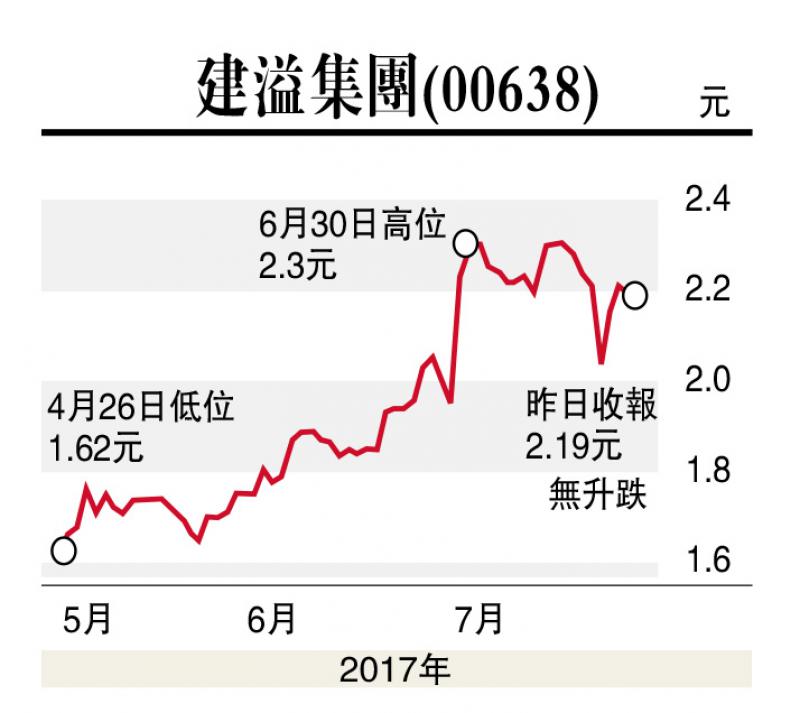 至於建溢的房地產發展業務尚未帶來收入,但住宅發展項目第一期「劍橋皇家」116個低密度住宅單位,已獲預售許可證,預期將會於2018年度業績反映,意味明年業績將大爆發。