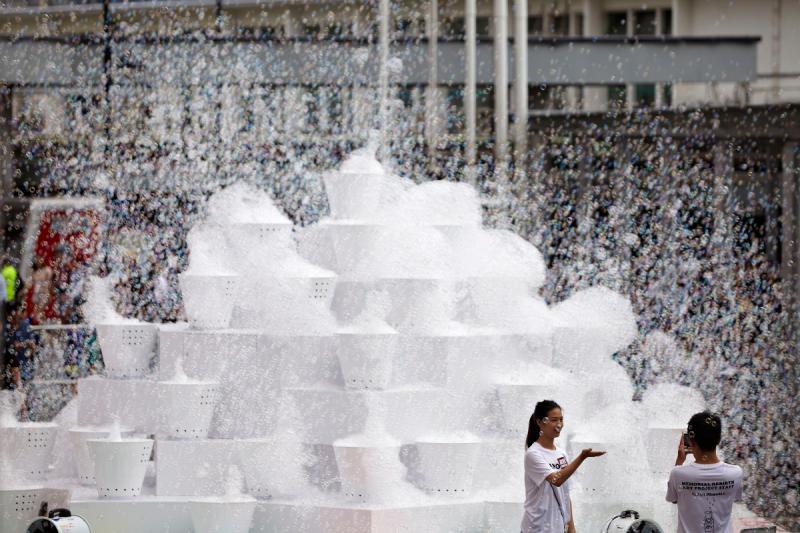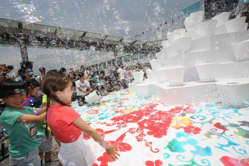 從日本引入的泡泡機會於海港城海運大廈露天廣場舉行藝術裝置表演