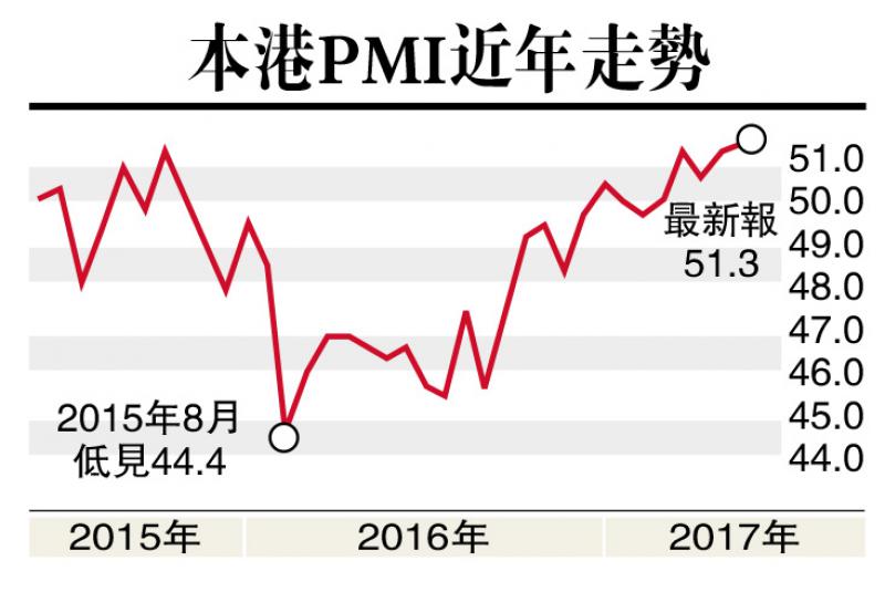 【大公報訊】記者李永青報道:7月份日經香港採購經理指數(PMI)為51.3,不但高於6月份的51.1,顯示私營經濟向好,接近3年半最佳。最新PMI數值標誌着目前的擴張周期已持續4個月,客戶於第三季度維持殷切的需求。
