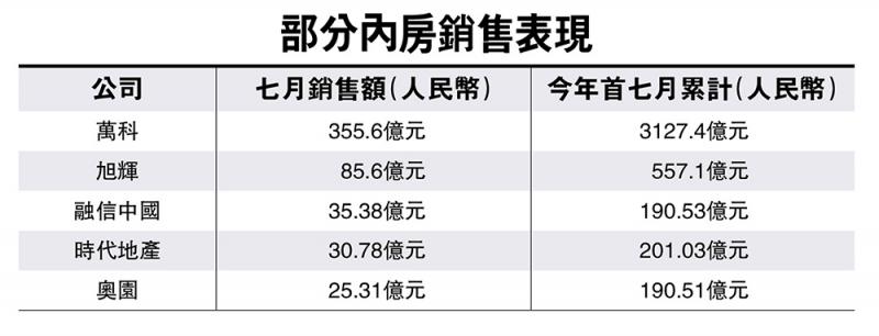 【大公報訊】記者陳詠賢報道:萬科(02202)公布七月銷售數據,七月實現銷售面積249.1萬平方米,銷售金額355.6億元(人民幣,下同),按月分別下跌28.5%及27.6%。今年一月至七月累計實現銷售面積2117.6萬平方米,累計銷售金額3127.4億元。自六月份銷售簡報披露以來,公司新增加項目20個,而公司新增物流地產項目有五個。