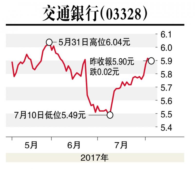 至於交通銀行的業務,是在內地及港澳;其他國家如美國、德國、英國、澳洲、日本、韓國、新加坡等地提供傳統銀行服務,此外亦提供金融服務。以現水平計算,此股預期市盈率在六倍以下,反映股價嚴重偏低,上升潛力強。