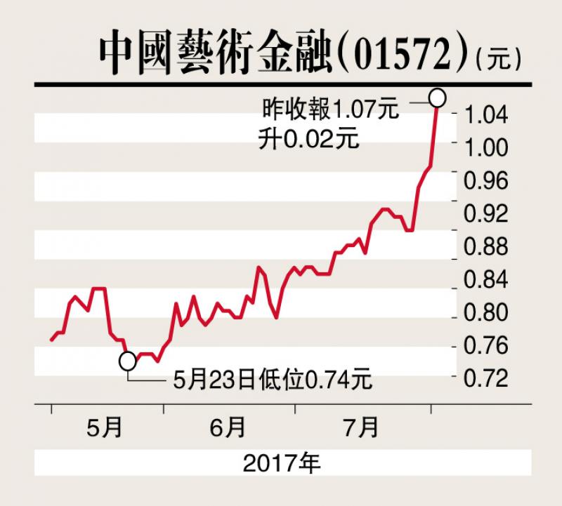 於2017年春季拍賣會,集團拍賣品的合共拍賣成交金額,較2016年增長29.6%至2.13億元;至今集團於2017年所舉辦拍賣會拍賣品的成交金額共計增長47.6%至2.7億元。去年,藝術品及資產拍賣業務的拍賣貸款收入為主要收入,佔比約52.4%,約為9260.9萬元,按年增加91.7%。