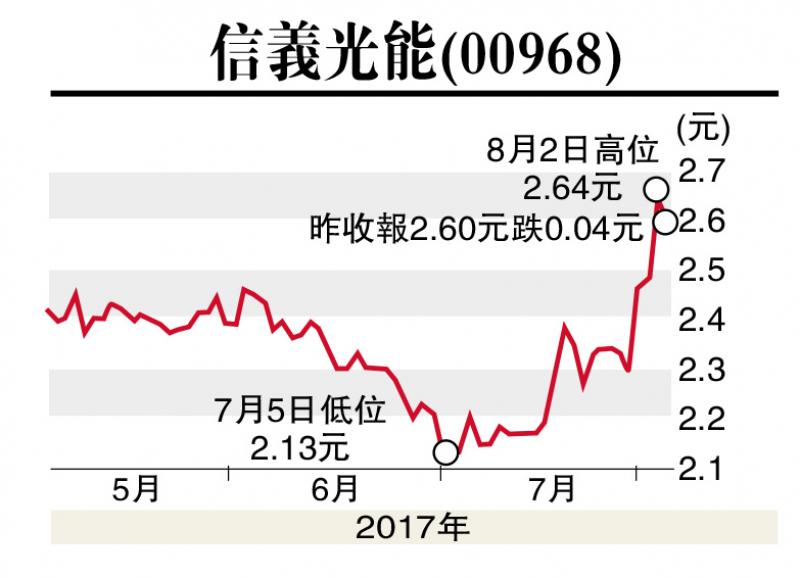 去年下半年以來,內地光伏行業競爭加劇,加上補貼縮水,光伏產品平均售價持續下降,拖累了行業業績表現。不過,今年上半年內地光伏裝機量高於預期,且新興市場需求強勁,近期相關產品價格已現回穩跡象。本周筆者推介信義光能(00968),因其業績表現理想,可持續受惠光伏市場需求增長,發展潛力大,值得留意。