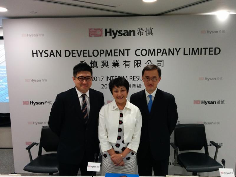 圖左起:希慎首席營運總監呂幹威、主席利蘊蓮、首席財務總監賀樹人