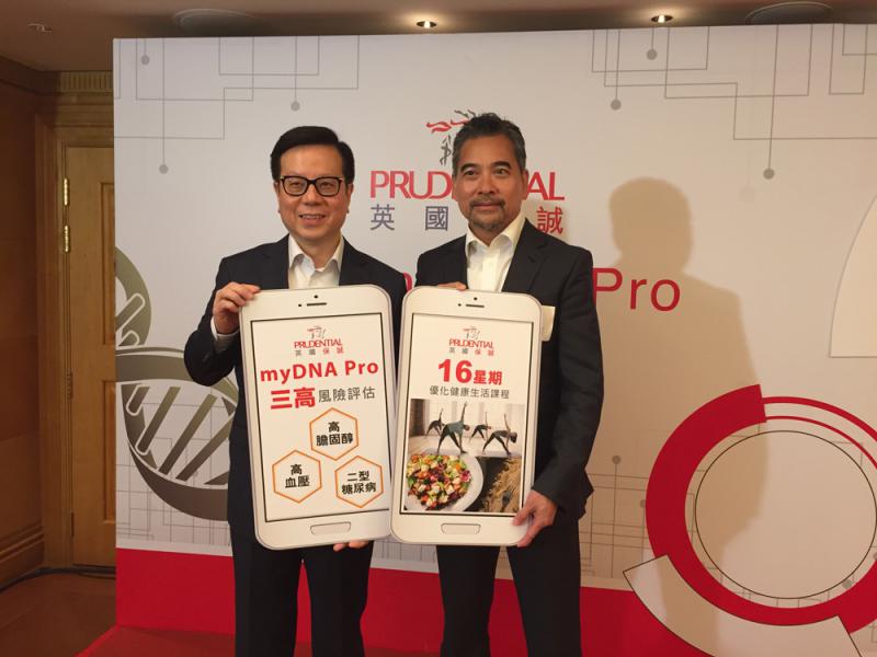 保誠推出以基因為本的精準科研健康導航「myDNA Pro」,透過簡單的基因測試及生活習慣評估,為客戶衡量「三高」(二型糖尿病、高血壓及高膽固醇)風險,並提供針對性的健康指引。保誠行政總裁容佳明及資深股評人「陸叔」陳永陸率先試用有關服務,結果較年輕的容佳明得分僅44分,遠低於陸叔的73分。