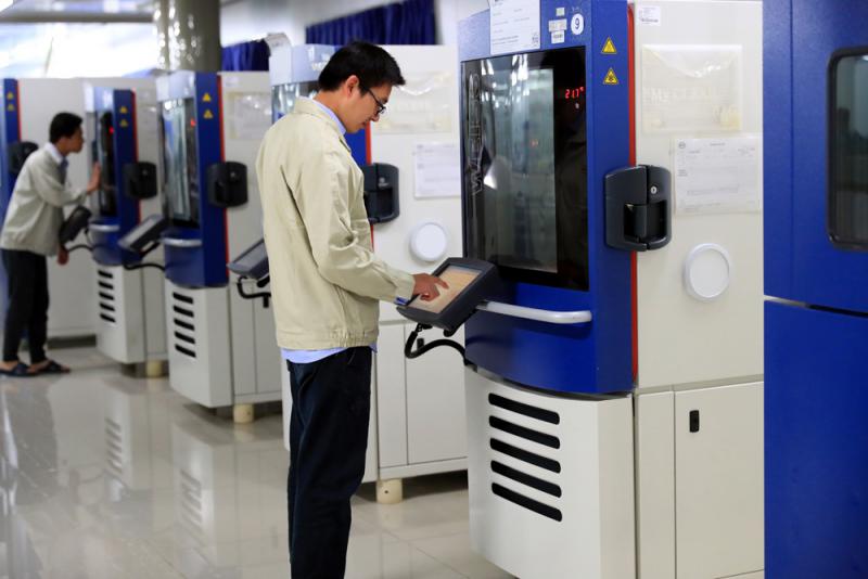圖:廣東深入實施創新驅動發展戰略,先進製造業佔規模以上工業產值一半左右。圖為深圳比亞迪檢測中心的工作人員在檢測加工的零部件