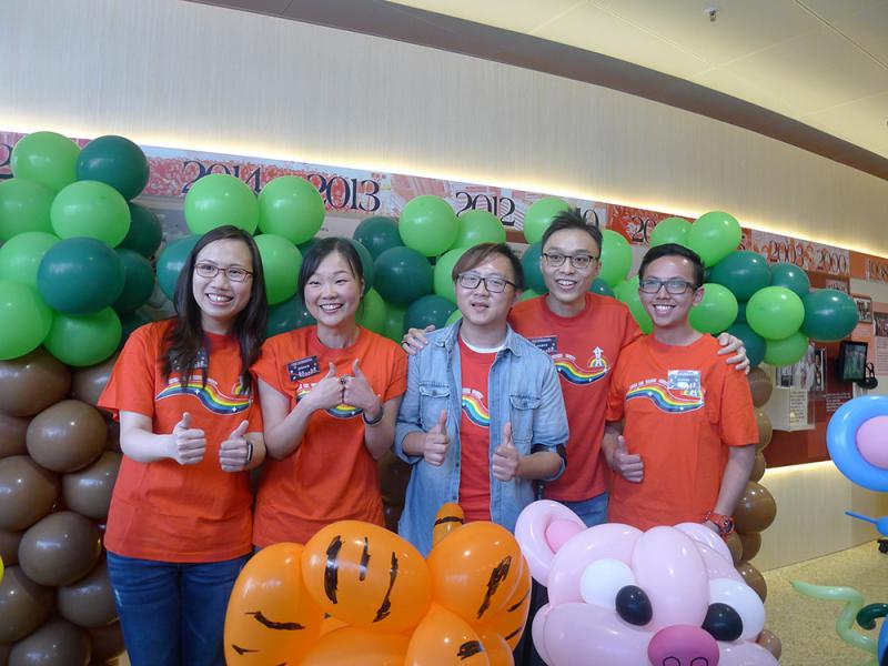 圖:五名傑出小戰士合影。左起:盧靄珊、黃可欣、12歲時患上骨肉瘤,現在致力服務勞工界的何偉航、在2016年獲香港殘疾人奧委會暨傷殘人士體育協會選為「Kappa傑出運動員2016」的周宏基以及13歲時患上腦瘤,現在香港則樓工作的關兆賢 /大公報記者楊綺青攝