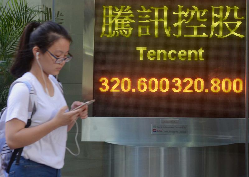 圖:股王騰訊再創上市新高,昨收報320.60元,單日漲2.95%,為升幅最大藍籌股 中通社