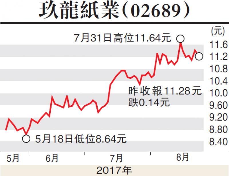 近年內地紙業市場供不應求,五月至七月本為市場傳統淡季,唯紙品價格仍持續上升,大部分企業已先後提價二至三次,浙江省部分地區更有造紙廠暫停接單。玖紙上半年已上調產品售價數次,每噸紙價共上調200至300元,五月至七月份亦暫停四台機器生產約9至50天,相信下半年紙價將再有上調空間。