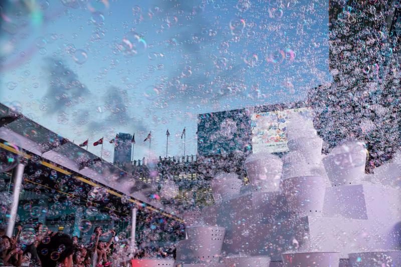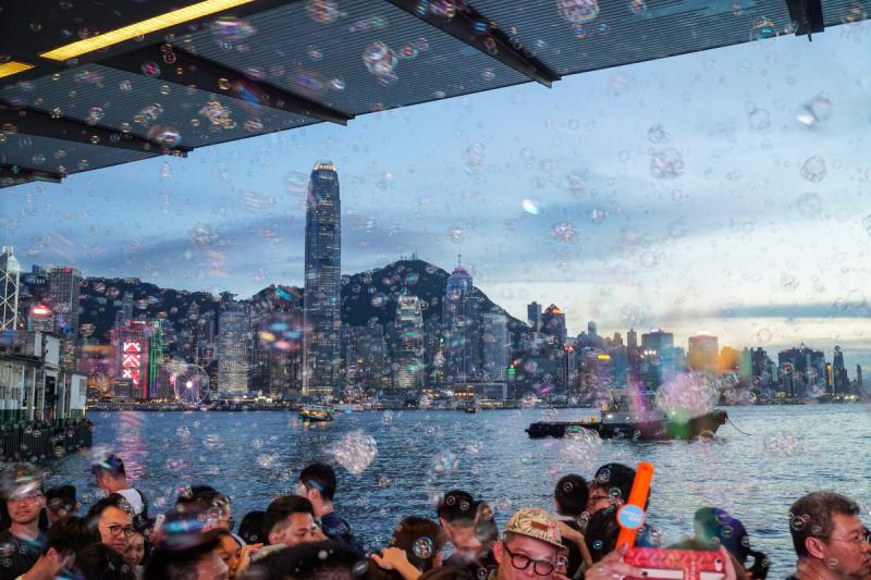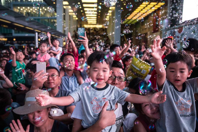 大公網8月9日訊(記者 林惠芳)尖沙咀海港城商場舉行的「Bubble Up」公共藝術表演,上周末開始在海運大廈露天廣場舉行,此泡泡裝置藝術表演每場吸引數千市民觀賞,被千萬泡泡包圍,場面壯觀熱鬧。有見及此,海港城宣布將於8月10日及17日加開晚上7時表演,令更多市民可以共同創造這「維港下的泡泡回憶」。