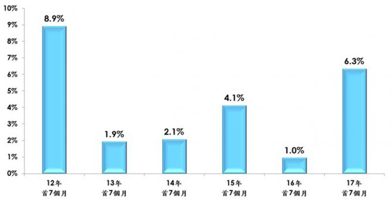 美聯物業首席分析師劉嘉輝指出,除了暑假傳統租務旺季帶動外,近期二手住宅買賣轉靜,令部分準買家觀望後市,並轉買為租,亦為租務帶來需求,故7月份租金持續攀升。值得留意,今年租金升勢突出,首7個月升幅達6.3%,遠遠高於去年同期僅約1%升幅,並且是近5年同期最高。