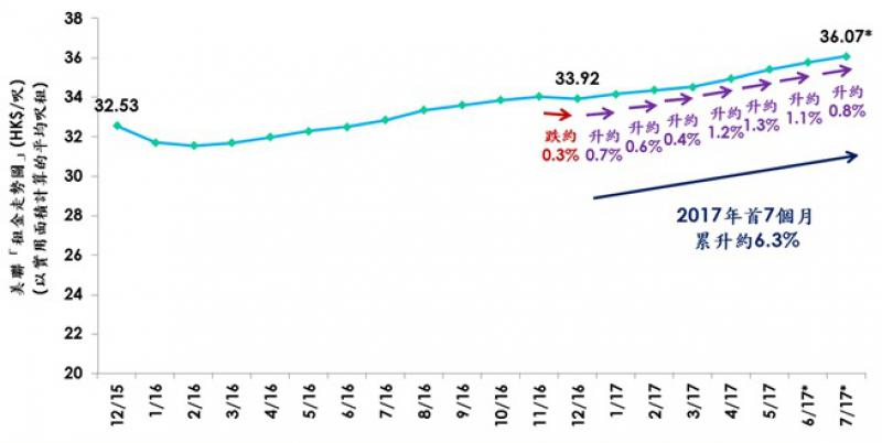 美聯「租金走勢圖」首7個月變化 (以實用面積計算的平均呎租)