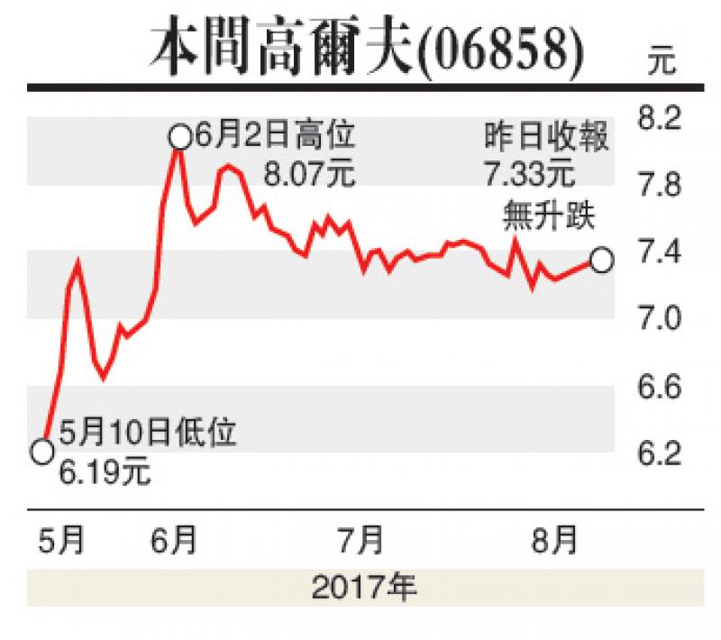 作為本港高爾夫第一股,2017年,本間高爾夫股價由五月上升至突破100天平均線,股價達每股7.65元。筆者認為,本間高爾夫不但擁有歷史悠久的品牌影響力同時加上業績理想,行業獨特,市場同類型選擇不多。同時本間高爾夫對生活方式和品牌創新的重視,相信本間高爾夫具有極大實力擴展海內外市場。該股溢價也將會在市場上釋放,發展前景廣闊。