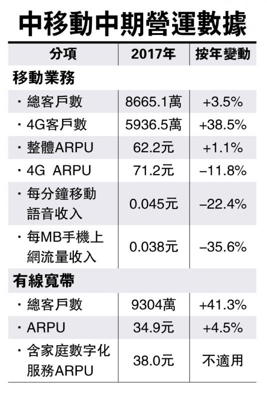她續說,國家的提速降費是長期政策,其中,電訊運營商在今年底前取消國內漫遊費,將影響電訊商下半年的盈利略低於上半年,按年則有望持平。