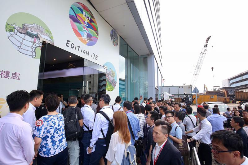 輪到B2組散客時段,下午二時三十開始報到,買家迫爆九龍灣傲騰廣場的售樓處,大排長龍,人龍由售樓處排至兩條街以外。現場所見,保守估計逾200人排隊。