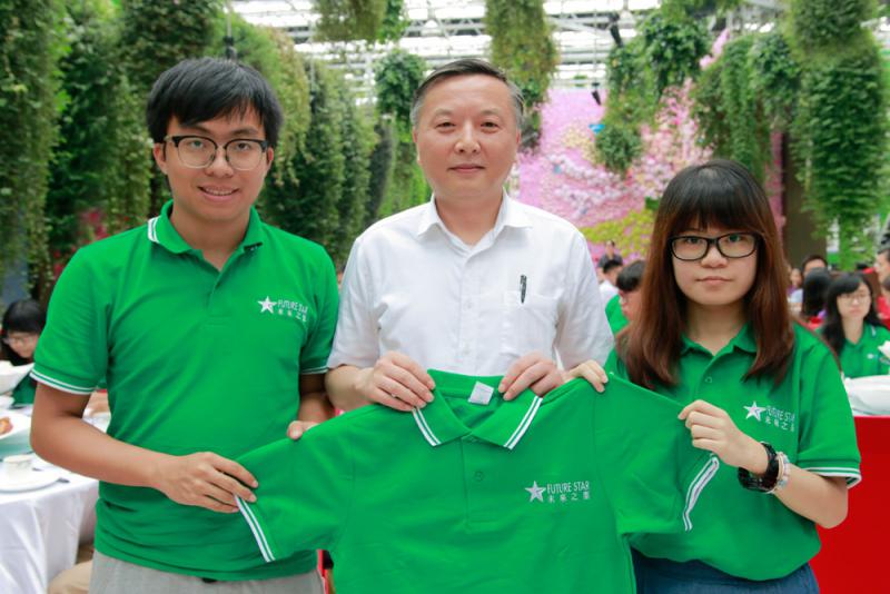 圖:「未來之星」代表向常州市委常委、宣傳部長徐光輝(中)贈送同學會T恤