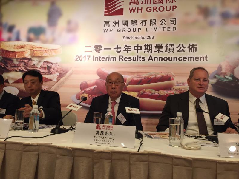 大公網8月14日訊(記者陳詠賢) 萬洲(00288)公布中期業績,上半年營業額較去年同期升2%至106.58億美元,經生物資產公允價值調整後純利按年升1.09%至5.57億美元,每股盈利4.07美仙,派中期息每股5仙。集團上半年完成收購美國豬肉食品加工企業,以及在近月收購波蘭肉類加工廠,董事局主席兼行政總裁萬隆表示,集團目前在海外併購上無大限制,相信鼓勵中國企業走出去仍是一貫政策,集團近期所作的海外併購,有助旗下動物蛋白產品多元化;他亦指,不擔心中國與美國進行貿易戰,因兩國之間的進出口有互補需要,相信未來不會有大問題。