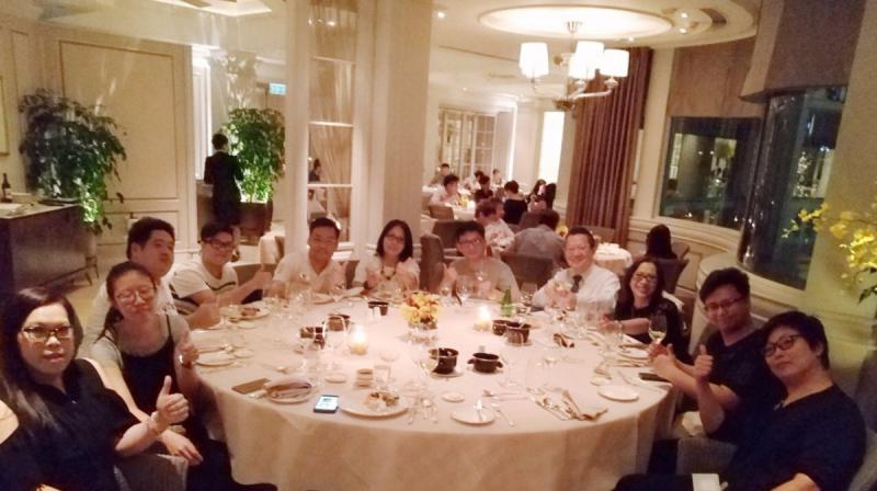 大公網8月15日訊(記者 林惠芳)祥益地產總裁汪敦敬為了獎勵一眾「爆數」員工,定期舉行「TOP'S豪華飯局」,日前特別挑選現存歷史最悠久的尖沙咀半島酒店內的「露台餐廳」舉行飯局,一同品嚐豐富的自助晚餐,同時可透過餐廳巨型落地玻璃,盡情俯覽一望無際的維多利亞港迷人夜景。