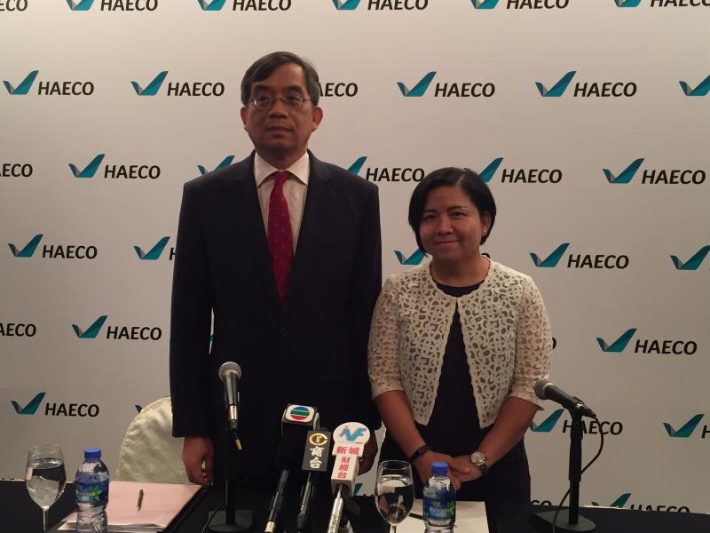 港機工程行政總裁鄧健榮(左)及財務董事龍雁儀(右)。(大公報記者邵淑芬攝)