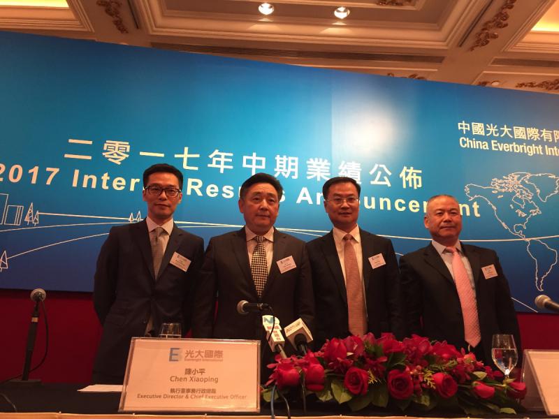 (左起)光大國際財務總監黃錦驄,行政總裁陳小平,總經理王天義,副總經理蔡曙光 (記者陳詠賢攝)