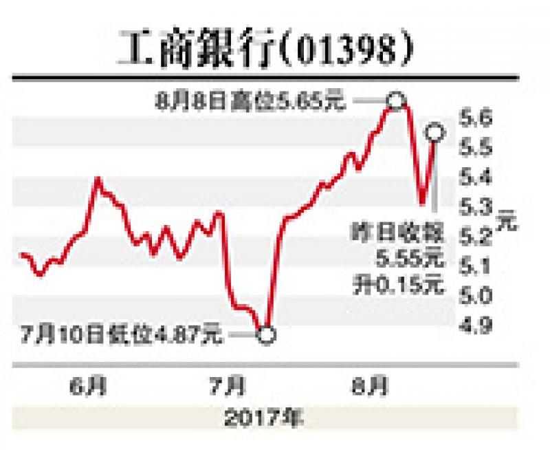 表現較強的是內銀股,工行、建行、中行、農行全部上揚,個別的還升至接近過去的高位,例如工行,就升了百分之二點八,建行升百分之一點一,中行升百分之一點六,農行升百分之二點二。