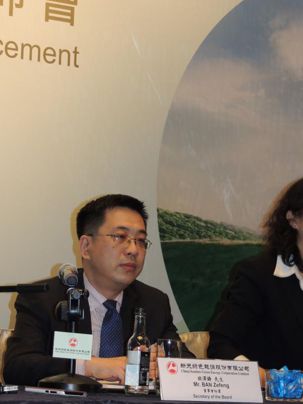 新天綠色能源董事會秘書班澤鋒。 大公報記者 李永青 攝
