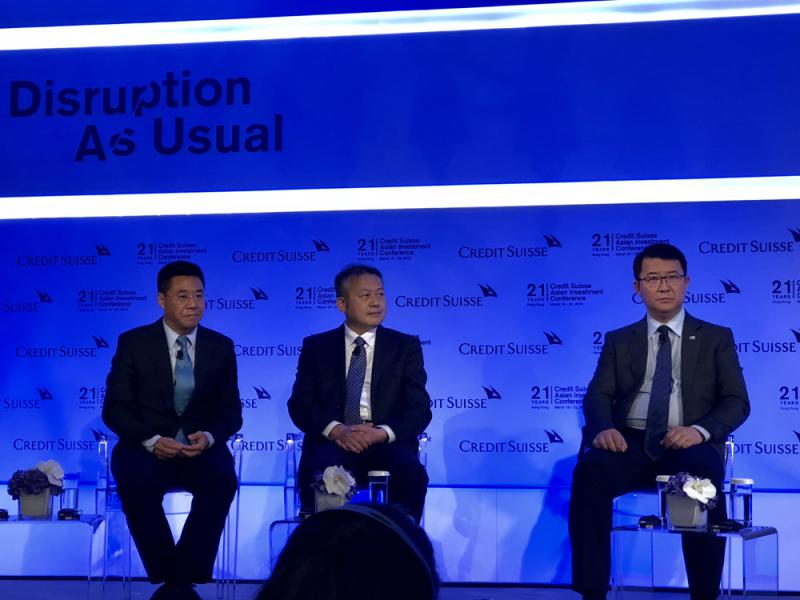 圖:(左起)光大控股首席執行官陳爽、東方國際執行總裁馬騰營、中信里昂證券董事長唐臻怡 大公報記者林靜文攝