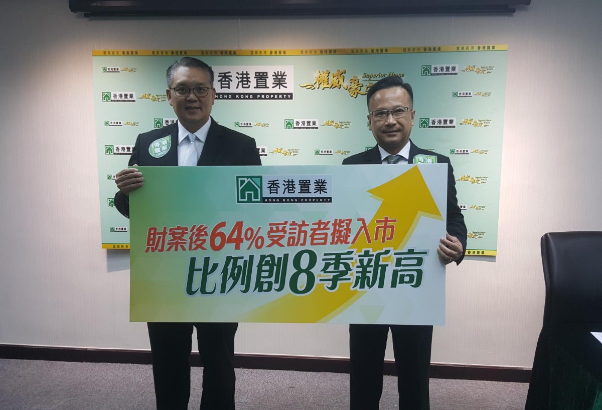 李志成表示,公司於上月財案公布後透過網上問卷形式進行2018年首季「置業意向調查」,成功收集412份問卷。對於政府未有在財案中提及加減辣招,大部分受訪者認為沒有影響其置業的信心,佔57%,有24%人認為信心有所增加,而信心減少的受訪者則僅佔19%。與此同時,市民置業意欲回升,表示有意於未來12個月置業的人約有64%,較去年12月初調查上升近22個百分點。