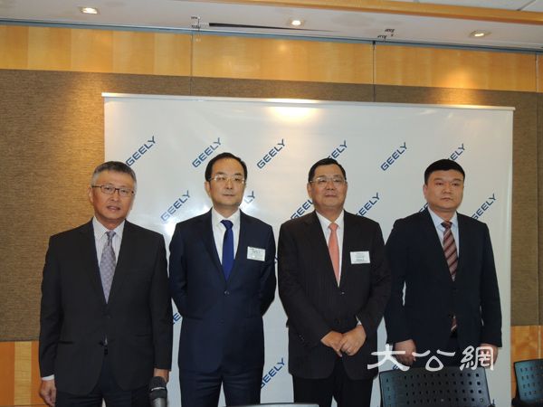 左起:吉利汽車執行董事洪少倫、執行董事安聰慧、行政總裁桂生悅、吉利控股財務管理部部長戴慶。(大公報記者 李永青 攝