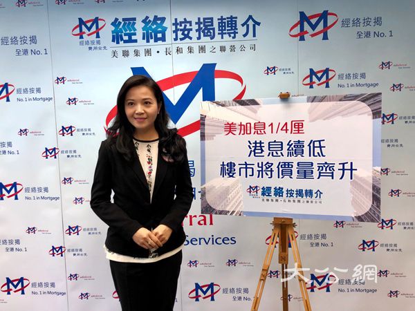 經絡按揭轉介首席副總裁劉圓圓表示,是次美國加息符合市場預期,但香港仍然有條件不跟隨加息,現時香港仍有接近1800億元的銀行體系結餘,資金成本相對低。香港的大小銀行除了未有調高息口,在按揭市場上更可看到其取態仍然十分積極,不斷將按息調低,並將現金回贈加碼,可見銀行仍然「水浸」,暫時未有加息的壓力。