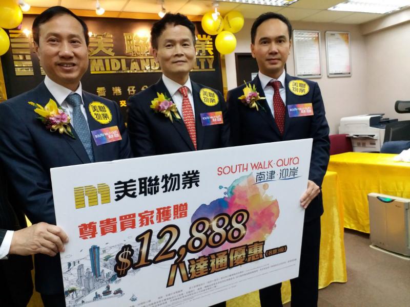 美聯住宅部行政總裁布少明表示,經該行購入南津‧迎岸單位,可獲價值12,888元八達通優惠,名額3名。