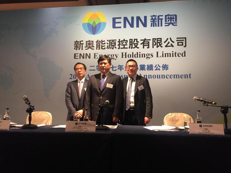 (左起)新奧能源執董王冬至,副主席張葉生,總裁劉敏 (記者陳詠賢攝)