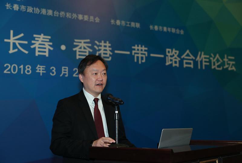 圖:香港貿易發展局華北、東北首席代表何建榮表示願助吉林企業尋「一帶一路」商機 大公報記者盧冶攝