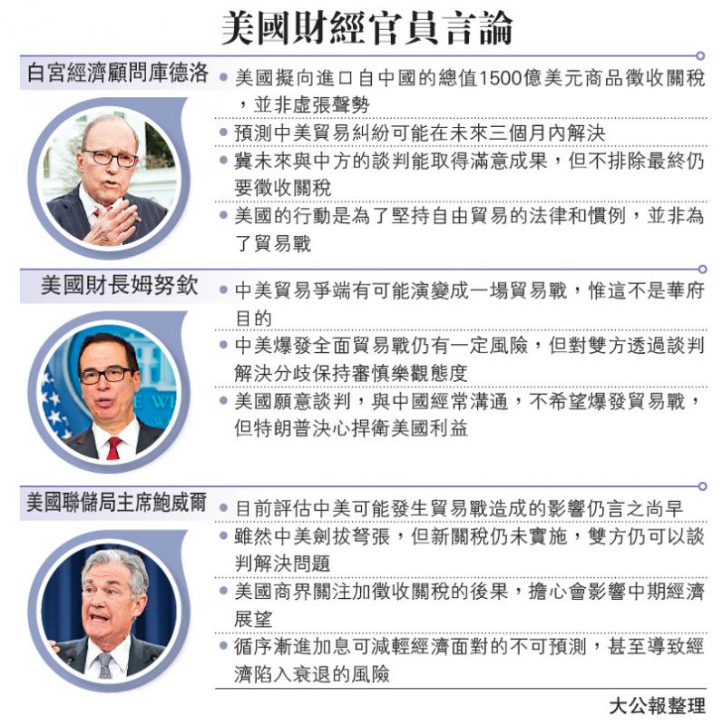 談及中美貿易糾紛,鮑威爾回應指出,目前估計關稅對美國經濟的影響「言之尚早」,難以評估。他補充,留意到有商界人士認為政府改變貿易政策將帶來輕微風險,包括關稅推高產品價格等因素。