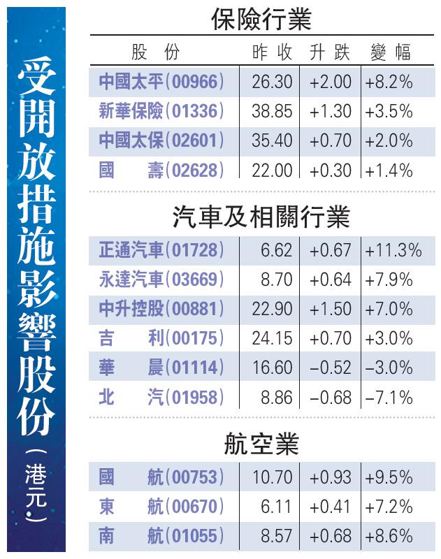 受開放措施影響股份(港元)