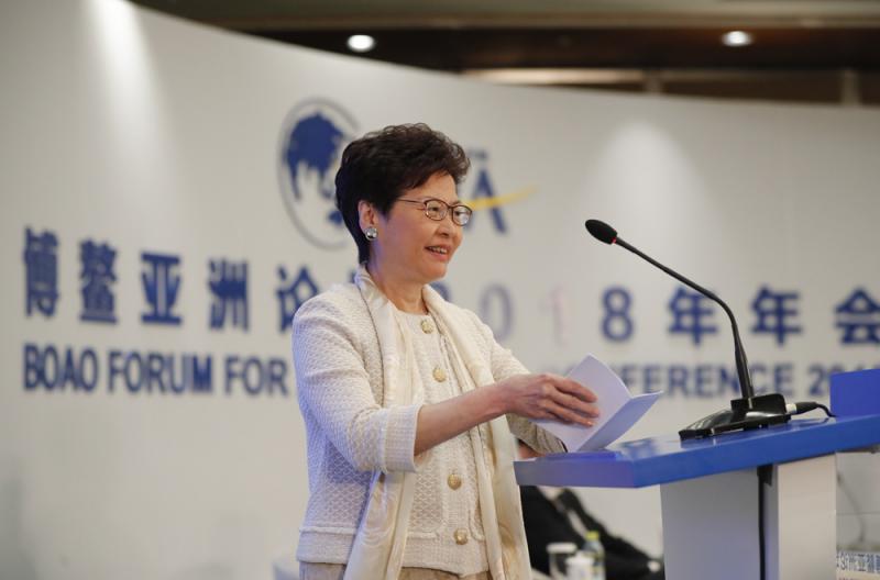 圖:特首林鄭月娥早前出席博鰲亞洲論壇2018年年會「粵港澳大灣區」分論壇\中新社