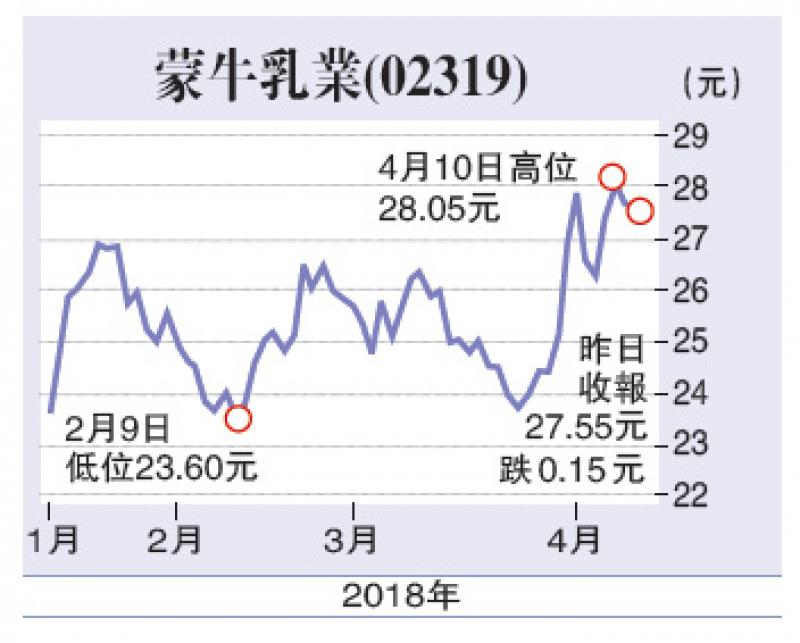 蒙牛乳業的業務,是在中國生產及銷售乳製產品,包括液態奶如乳飲料、酸奶,另外如冰淇淋、奶粉及乳酪等。回顧上個年度集團的業務發展,表現理想,業績轉虧為盈,同時,各個分類業務營業額均錄得雙位數字大幅增長,其中液態奶溢利增長強勁,為集團帶來盈利貢獻。以現水平計算,此股的預期市盈率在25倍左右,由於市場對集團有憧憬,因此可以接受一個較高的市盈率,而且資金追捧,具進一步爬升潛力。