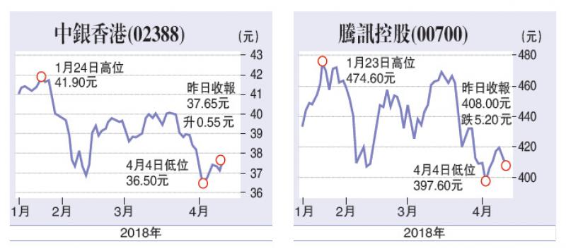 股王騰訊(00700)作為大市的指標,昨日表現欠佳,收四○八元,跌五元二角,四○五元的大股東批股價又漸漸臨近,希望真的能守住。此外,四○○元也是一個重要心理關口,即使不守四○五,也要守四○○,否則可能會引發「骨牌效應」。