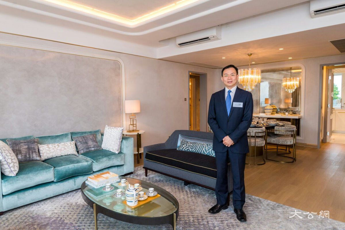 項目現樓示範單位今首度向傳媒開放,其中1座3樓A室連裝修示範單位,實用面積1,614方呎,4房雙套間隔。