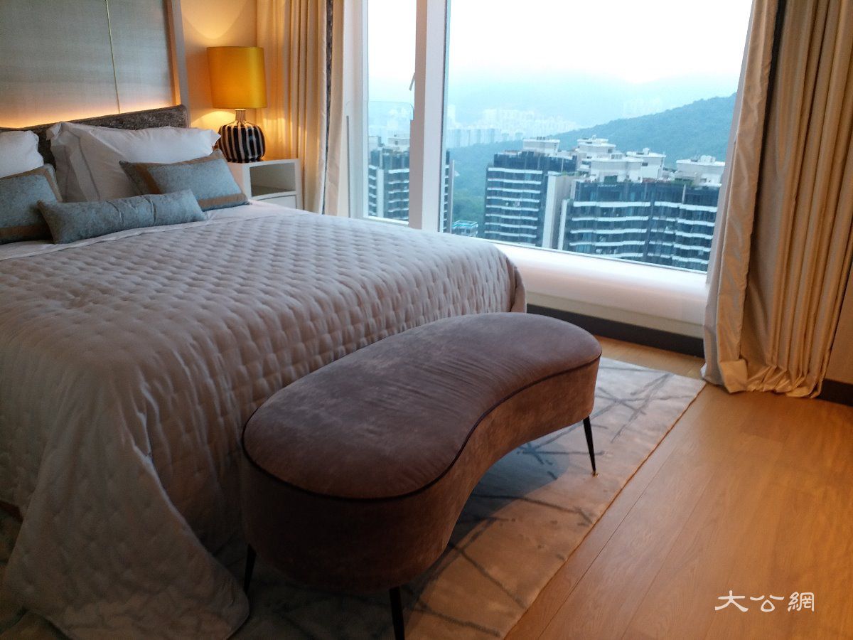 主人房的落地玻璃窗,窗外翠綠景致有如一幅畫(大公報記者梁穎賢攝)